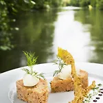 Dans la salle à manger les hôtes peuvent prendre leur petit déjeuner continental. Les restaurants à proximité, dont Le Ksar se trouvent à 1 km d'Hôtel&Spa Château de l'ile.